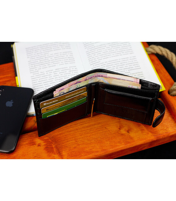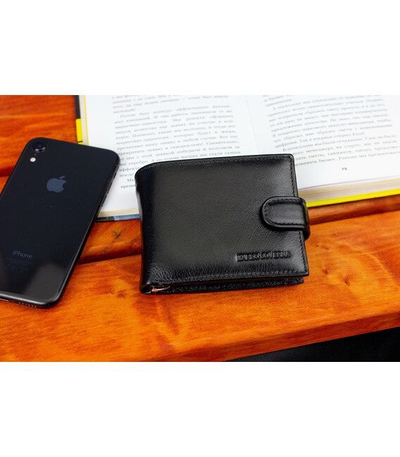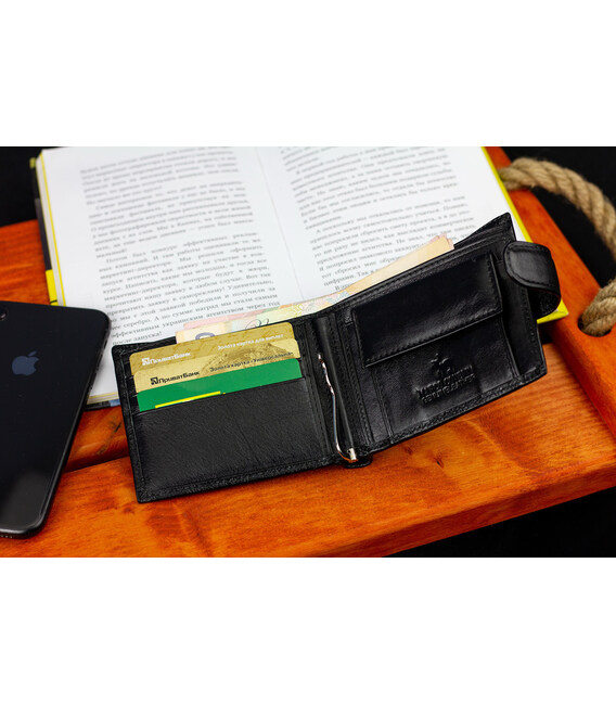 Описание Черное кожаное мужское портмоне с зажимом для денег Marco Coverna MC-2006H-1