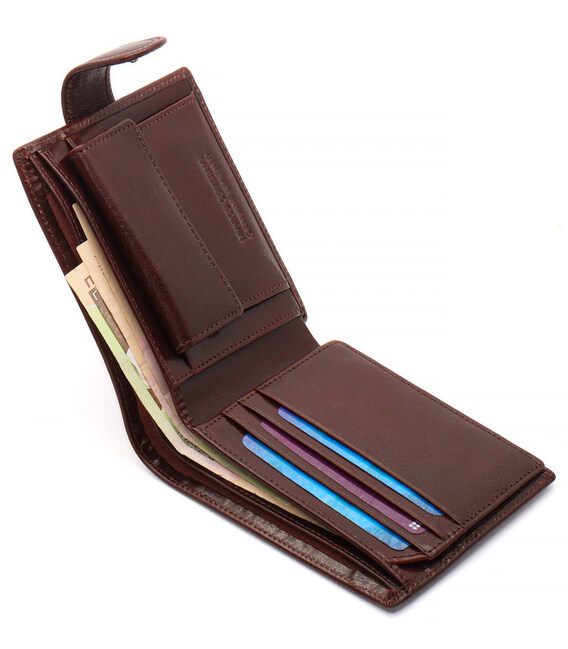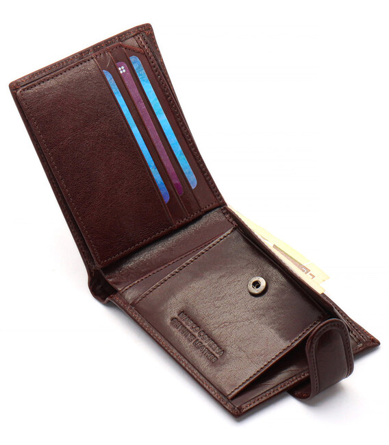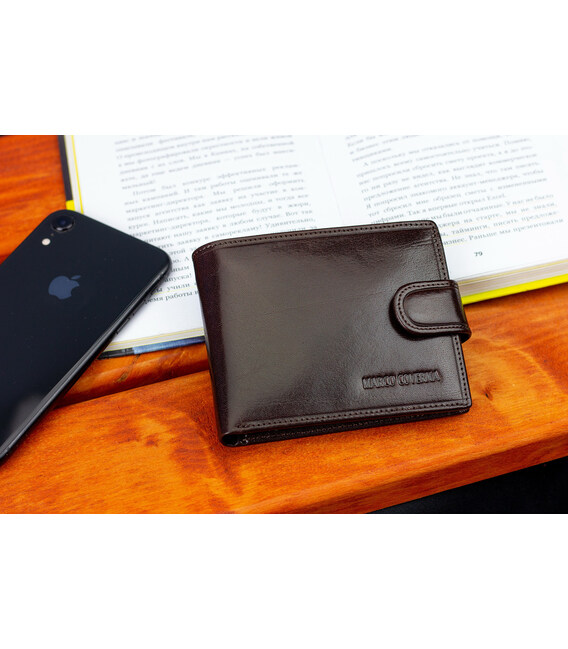 Описание Коричневое мужское портмоне на кнопке из натуральной кожи Marco Coverna B047-801