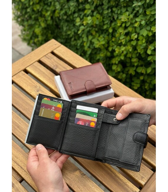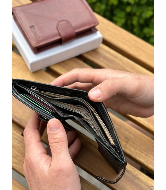 Мужское портмоне в виде книжечки выполнено в классическом стиле. В нем есть не только 2 секции для купюр, но и объемный блок для документов. В него помещаются водительские права и техпаспорт на автомобиль. Прилегающие карманы можно использовать для хранения денег на "черный день". В кожаном кошельке также есть место для восьми банковских карт и отделение для паспорта. Монеты удобно носить во внутреннем кармане на кнопке.