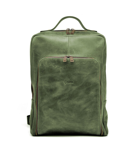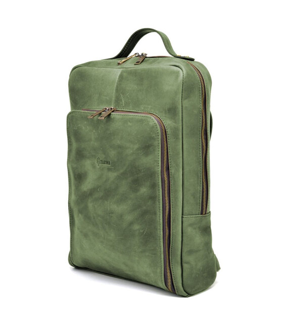 Рюкзак для ноутбука 15 дюймів RE-1240-4lx в зеленій шкірі від українського бренду TARWA. Відмінний варіант для роботи, навчання. Універсальна модель, підійде для чоловіків та дівчат.