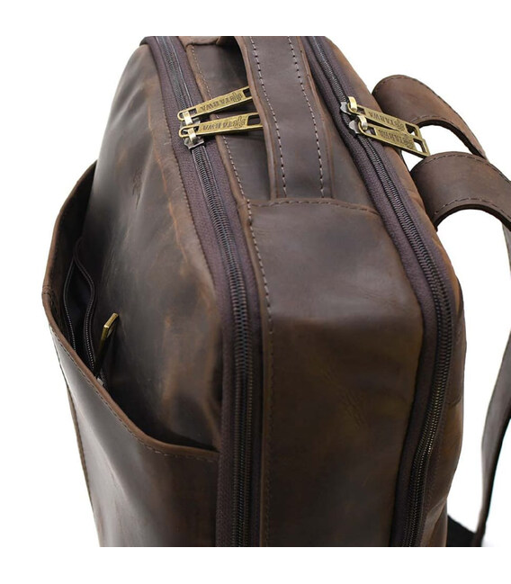 Описание Шкіряний чоловічий коричневий рюкзак RC-7281-3md з передньою кишенею на блискавці