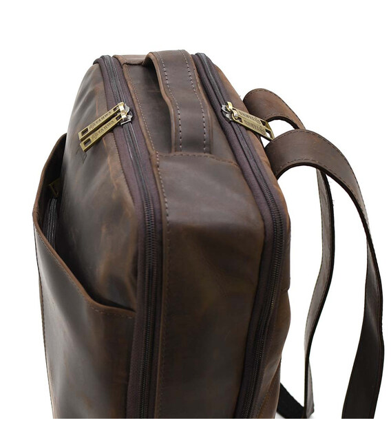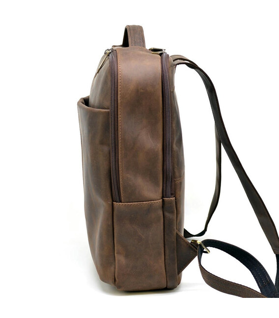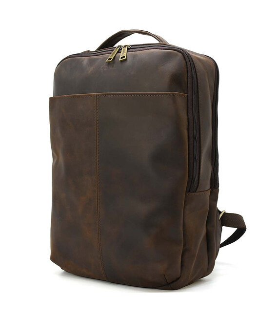 Шкіряний чоловічий коричневий рюкзак RC-7281-3md з передньою кишенею на блискавці. Зручний та практичний аксесуар, чудове рішення для повсякденного використання.