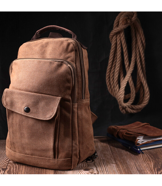 Описание Удобный текстильный рюкзак с уплотненной спинкой и отделением для планшета Vintage sale_15078 Коричневый