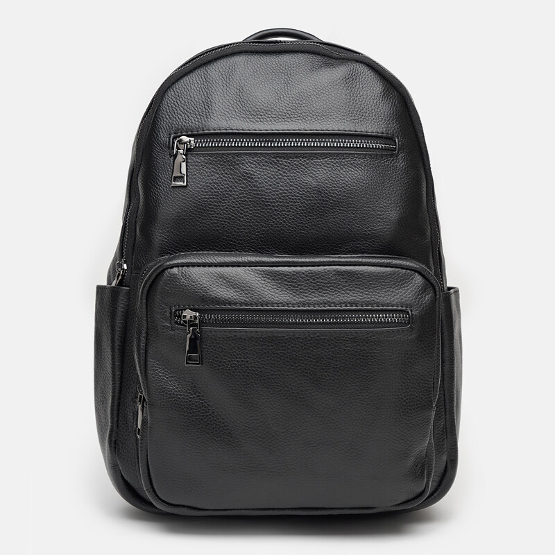 Практичная и стильная модель кожаного мужского рюкзака. Закрывается на молнию, имеет 1 отделение. Внутри-2 кармана. С лицевой стороны-3 кармана на молнии, с тыльной-1 горизонтальный карман ан молнии. По бокам-карманы. Подкладка-текстиль. Цвет фурнитуры-серебро. Фурнитура-металл. Плечевые ремни регулируются по длине.