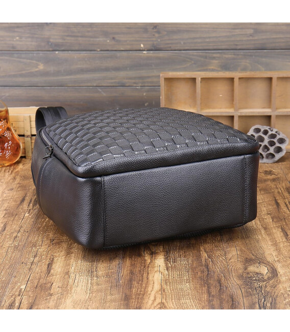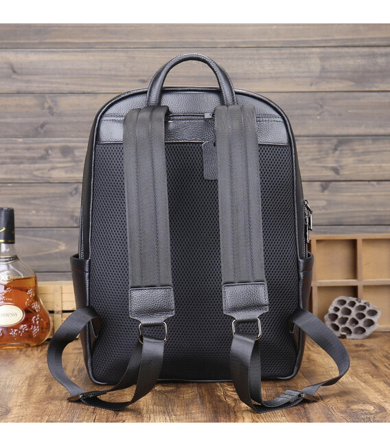 Рюкзак мужской кожаный. Черный городской рюкзак для ноутбука и документов Tiding Bag 22727