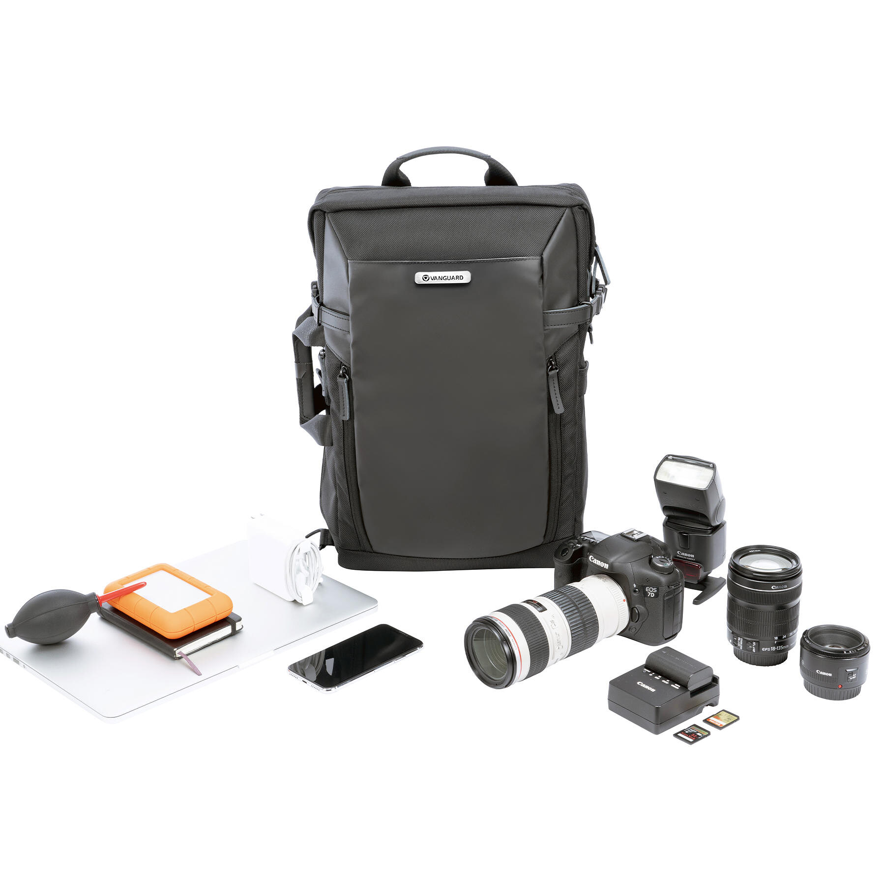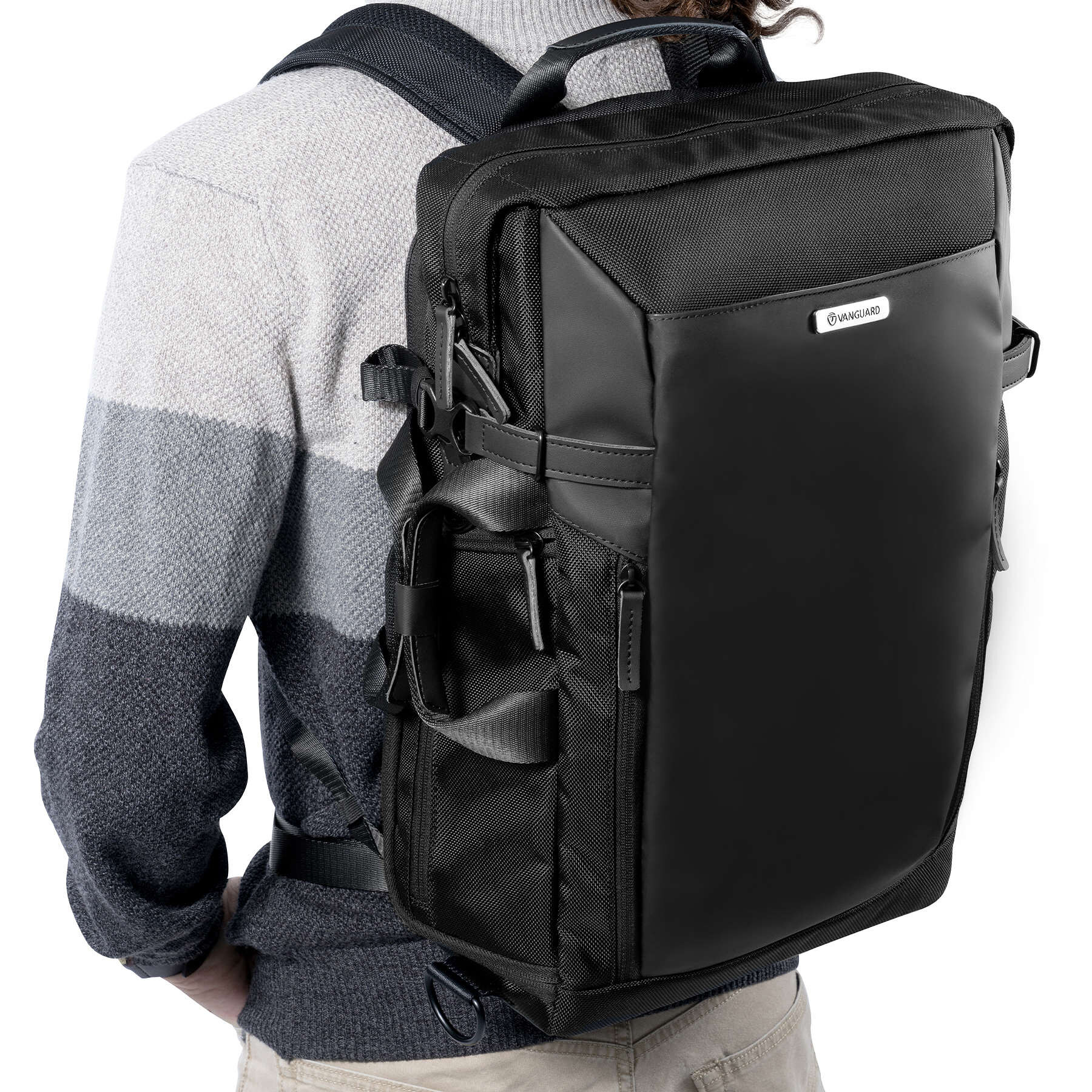 Vanguard VEO Select 45M — это универсальный рюкзак-сумка, который сочетает функциональность профессионального фоторюкзака со сдержанным городским дизайном. Его внешний вид не выдает, что внутри находится дорогая фототехника, а продуманная модульная система позволяет адаптировать внутреннее пространство под камеру, объективы, дрон или видеооборудование, или же использовать рюкзак как повседневный городской. Дополнительные боковые ручки и съемный плечевой ремень позволяют использовать его как сумку.