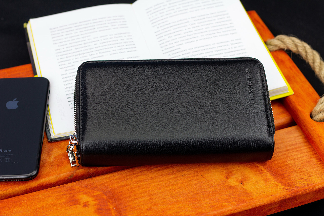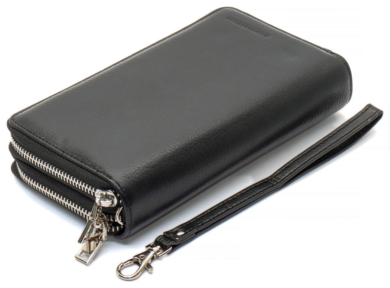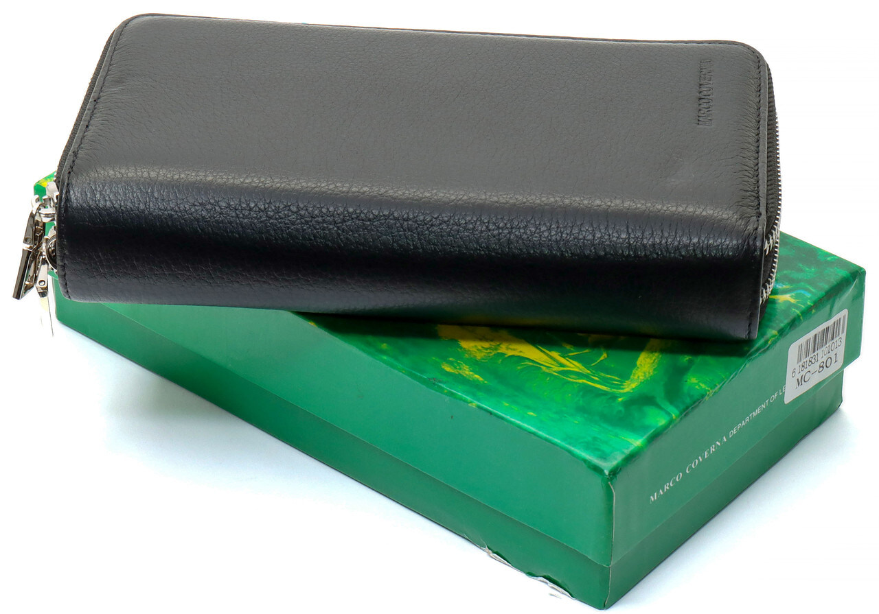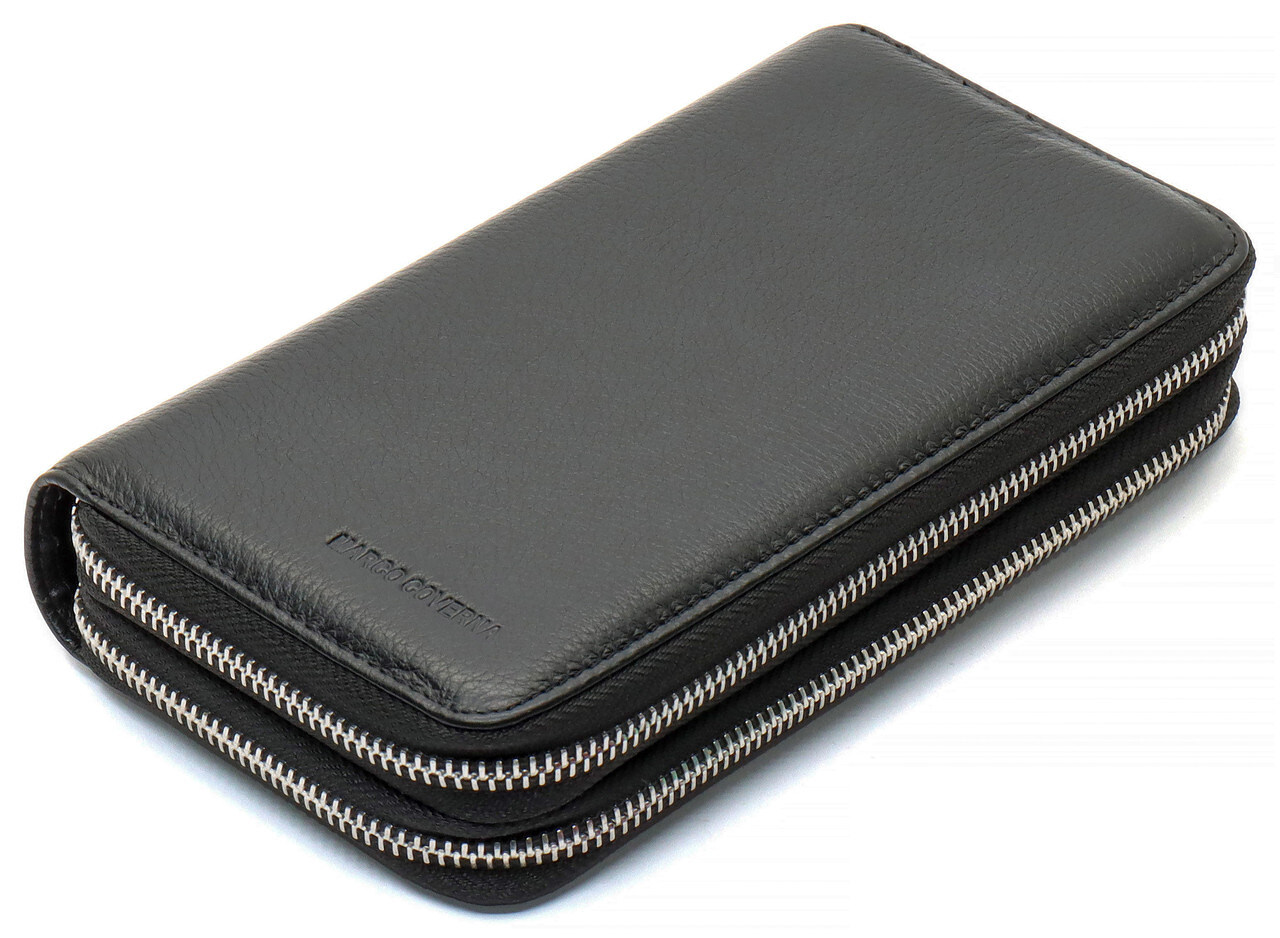 Черный мужской кошелек-клатч на две молнии из натуральной кожи Marco Coverna MC-801