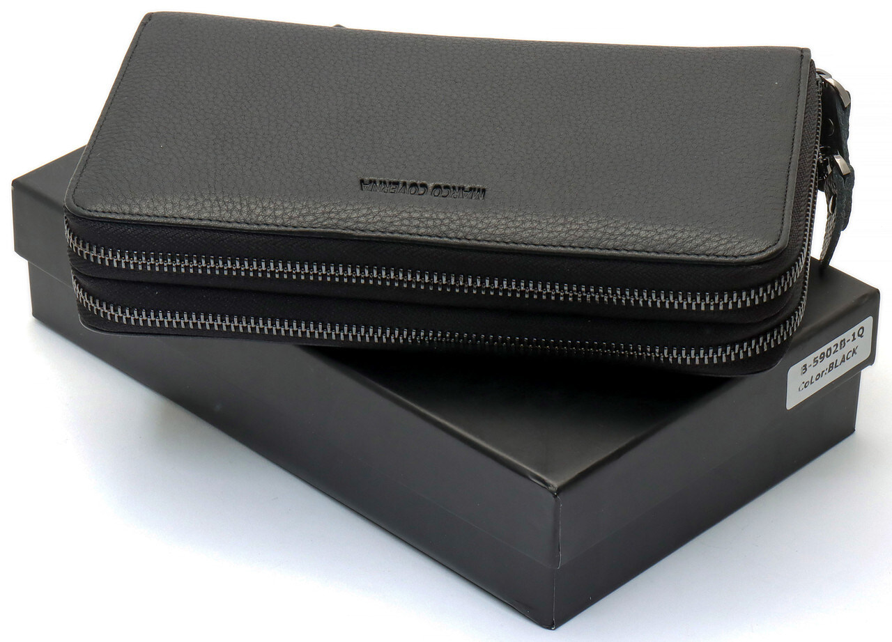 Черный кошелек-клатч на две молнии из натуральной кожи Marco Coverna B-5902B-1Q