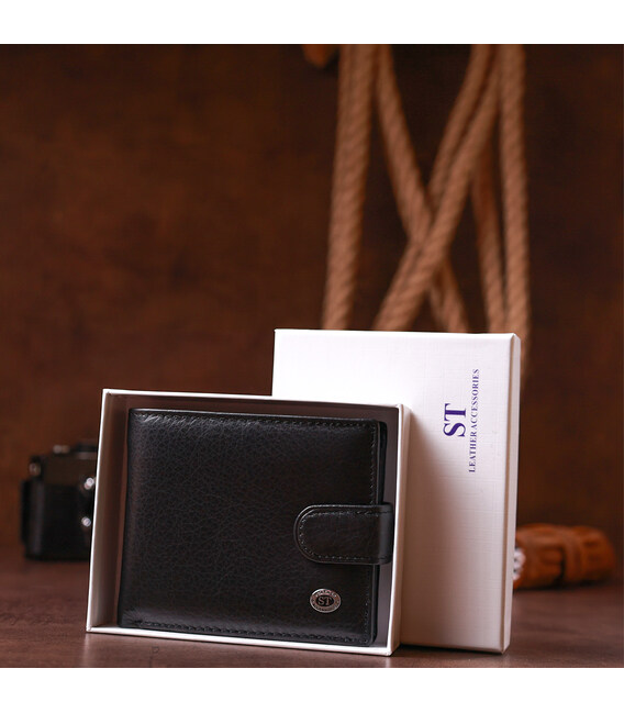 Описание Мужской кожаный купюрник для карт купюр и монет ST Leather 18308 Черный