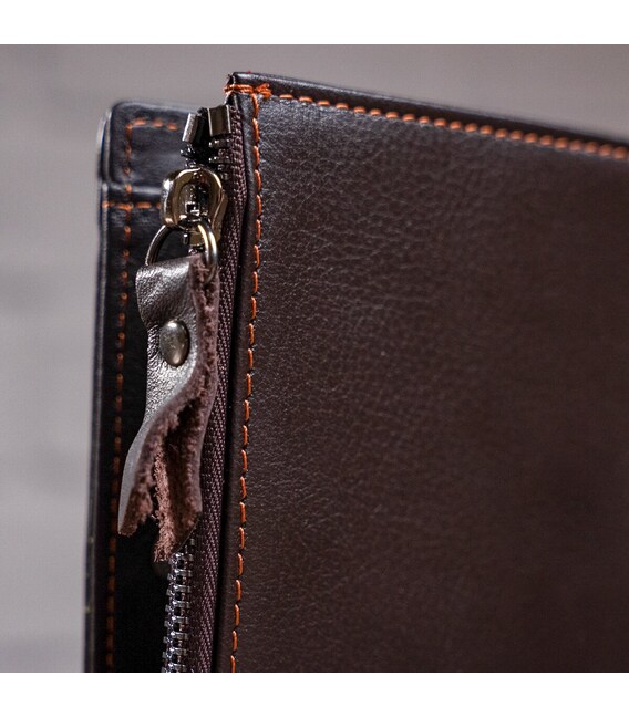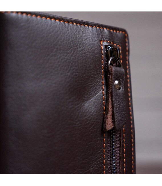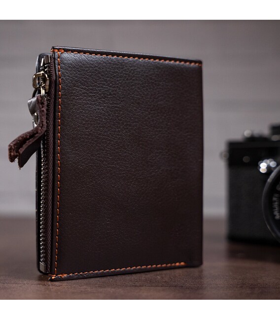 Аксессуар прошит по краям светло коричневой нитью. Модель небольшого размера и поместится в карман или сумку. Кошелек выполнен из натуральной кожи высокого качества. Фурнитура в кошельке цвета темного серебра. Модель оснащена самым необходимым функционалом для любого человека. Производство фабричный Китай высокого качества. Аксессуар упакован в пылезащитный чехол Если вы решите выбрать такой аксессуар на подарок для близкого человека точно не ошибетесь.