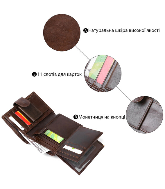 Описание Кошелек мужской Vintage 14925 Коричневый