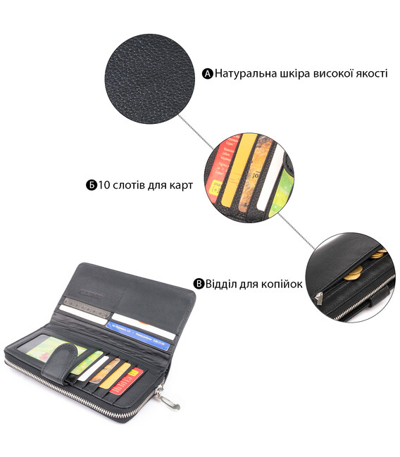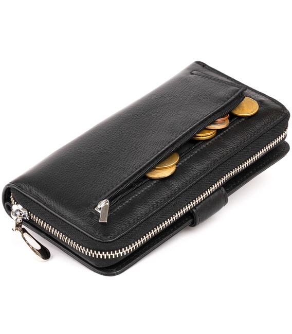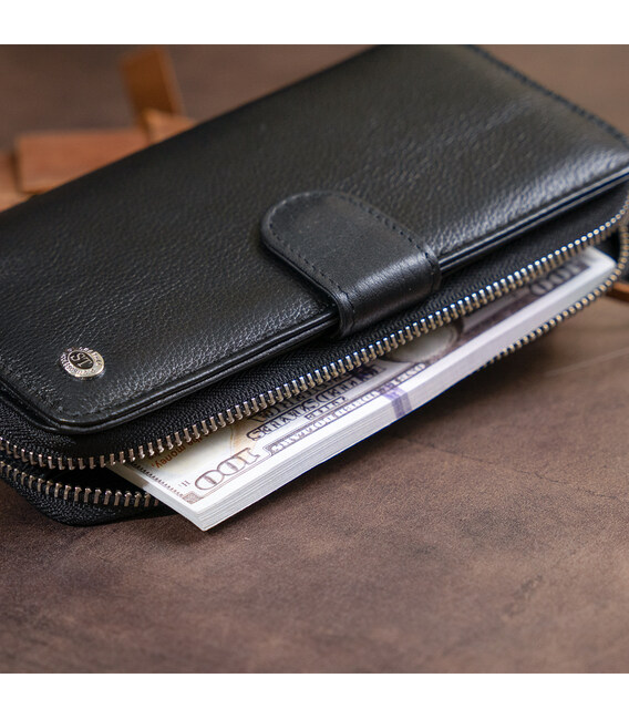 Описание Вертикальный вместительный кошелек из кожи унисекс ST Leather 19300 Черный