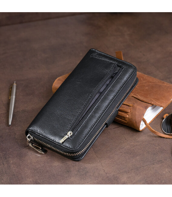 Вертикальный вместительный кошелек из кожи унисекс ST Leather 19300 Черный