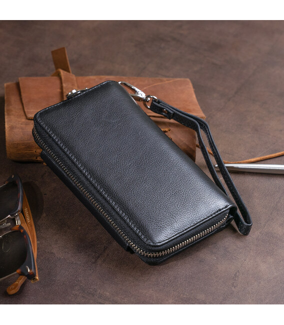 Презентабельный женский кошелек из натуральной кожи, универсального черного цвета. Он имеет много различных отделений и карманов, поэтому можете не переживать, ведь в него поместятся все Ваши необходимые вещи . Функциональности данной модели можно позавидовать. Его можно носить в сумке, портфеле, а также как самостоятельный аксессуар. Внутри кошелька достаточно места для удобного расположения купюр, кредиток и других личных вещей. Спешите купить клатч для себя или на подарок близкому человеку. При покупке кошелька, он будет упакован в фирменную картонную коробку белого цвета.