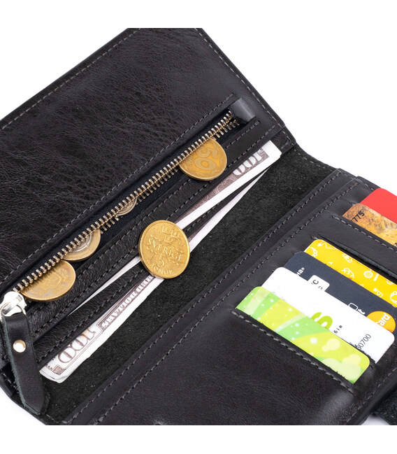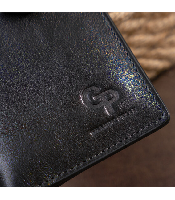 Описание Вертикальный бумажник глянцевый Anet на кнопке GRANDE PELLE 11324 Черный