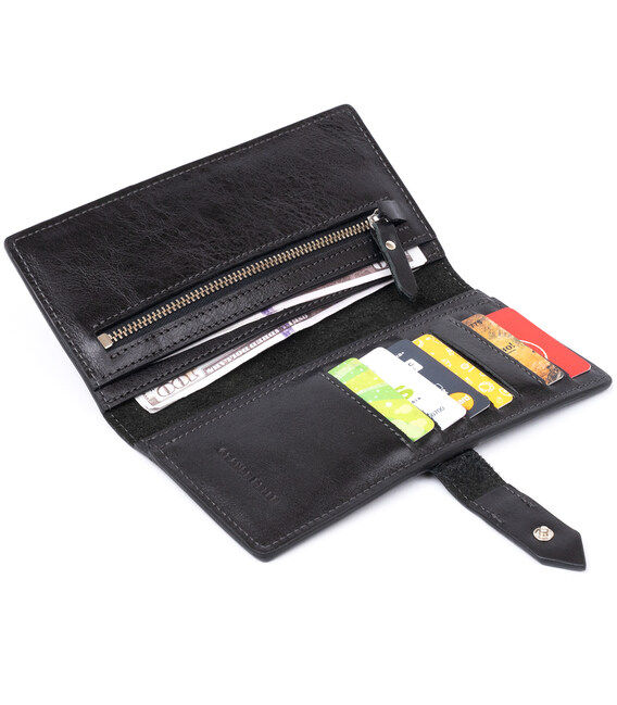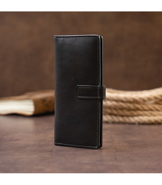 Вертикальный бумажник глянцевый Anet на кнопке GRANDE PELLE 11324 Черный
