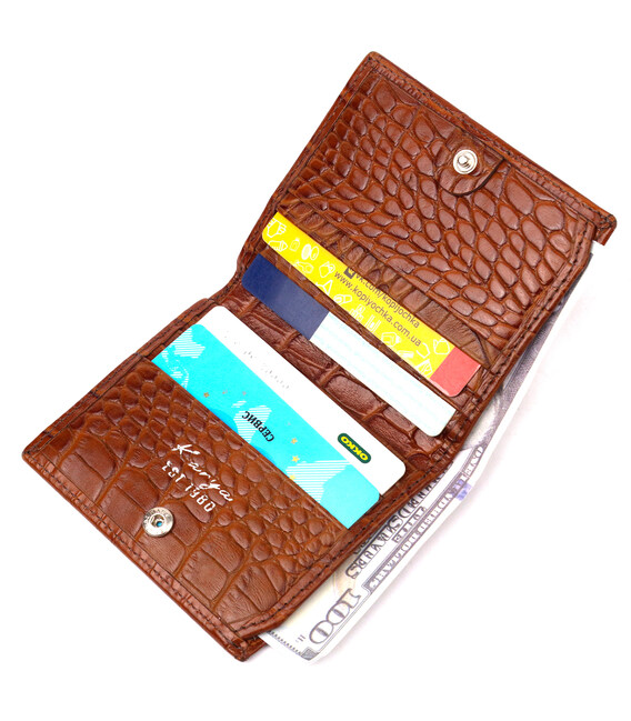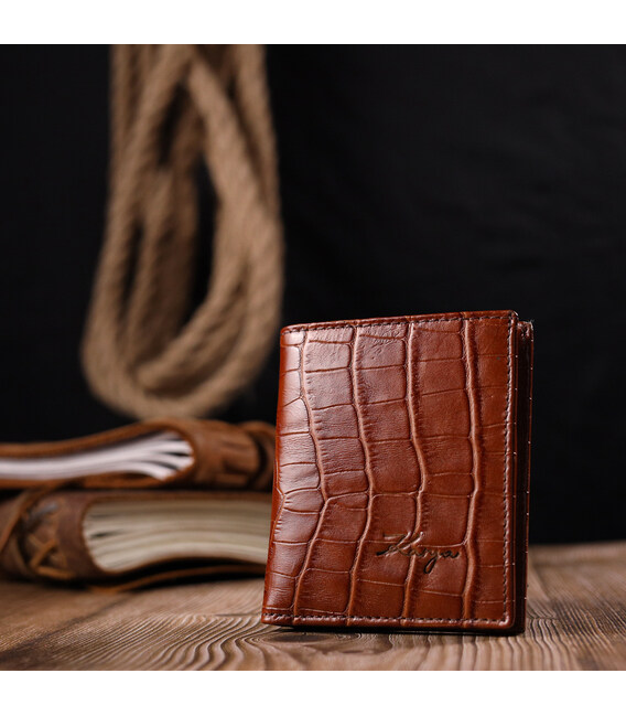 Описание Надежный мужской кошелек из фактурной кожи под рептилию KARYA 21058 Коричневый
