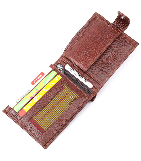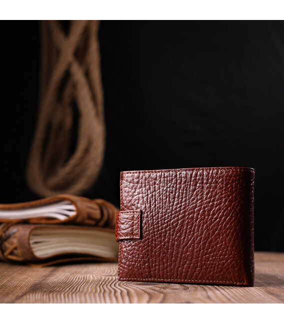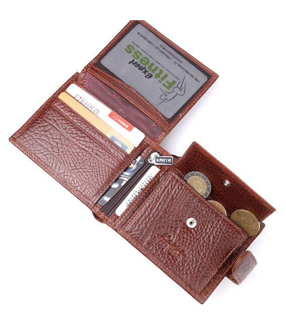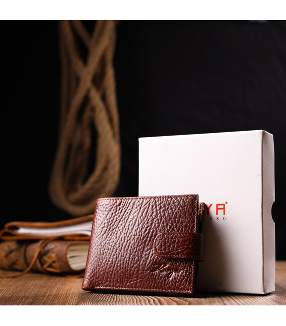 Описание Практичный мужской кошелек с хлястиком из натуральной кожи KARYA 21075 Светло-коричневый
