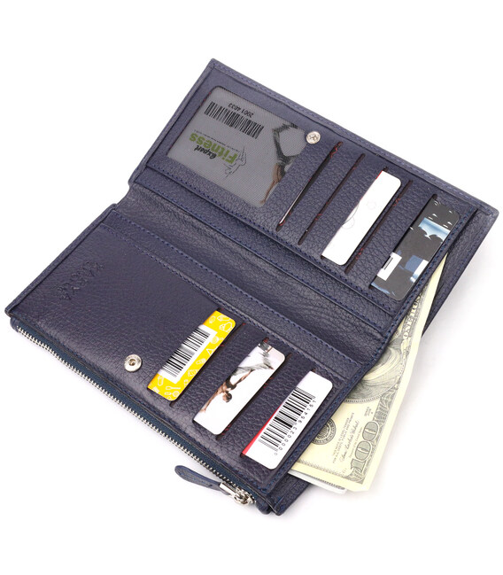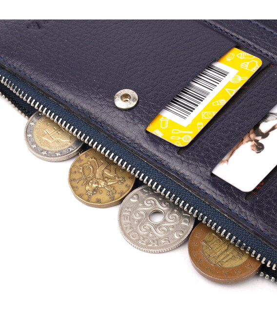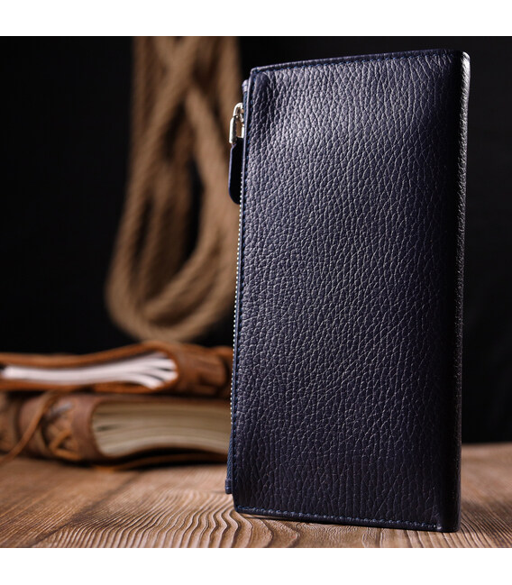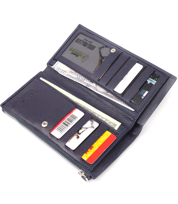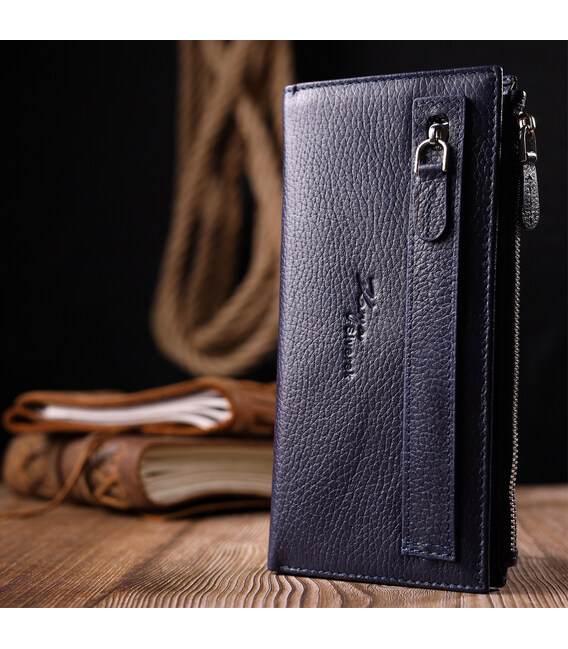 Описание Надежный складной кошелек из натуральной кожи KARYA 21130 Синий