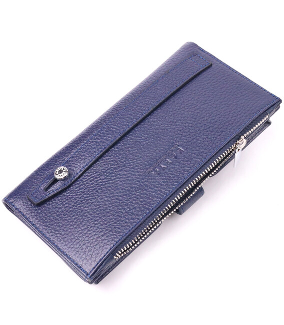 Модный бумажник из натуральной кожи в стильном синем цвете. Кошелек состоит из одного глубокого отделения, четырех прилегающих карманов, двенадцати ячеек для карт, отделения под сеточкой, отделения на молнии снаружи и отделения для телефона, что закрывается хлястиком на кнопку. В изделиях этого элитного турецкого бренда всегда используются самые качественные кожаные материалы и фурнитура. Аксессуар упакован в фирменную коробочку. Кожаное изделие всегда будет прекрасным подарком для любого мужчины.