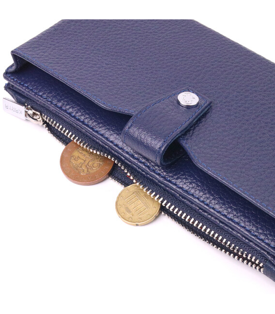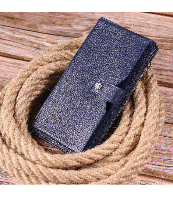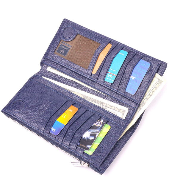 Описание Стильный вертикальный бумажник из натуральной кожи KARYA 21423 Синий