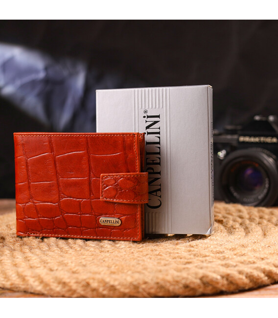 Описание Мужской небольшой кошелек из натуральной фактурной кожи CANPELLINI 21510 Светло-коричневый