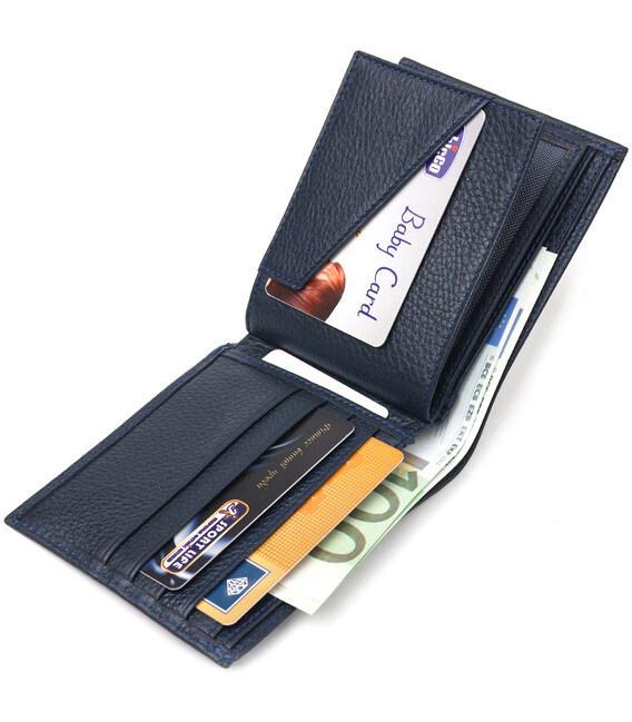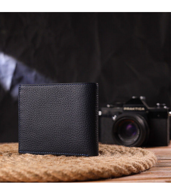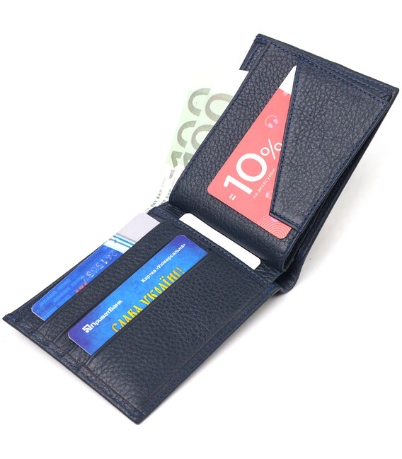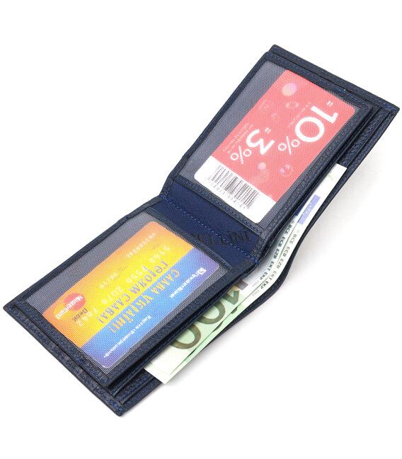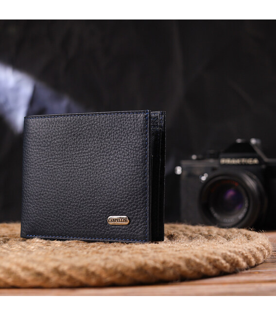 Описание Вместительный кошелек для мужчин в два сложения из натуральной кожи флотар CANPELLINI 21581 Синий