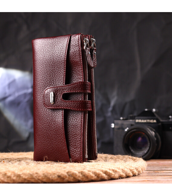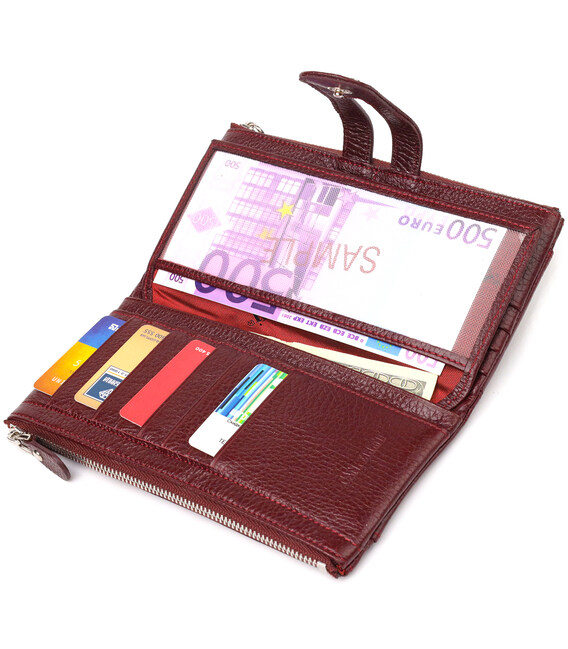 Описание Красивый кошелек из натуральной зернистой кожи CANPELLINI 21636 Бордовый