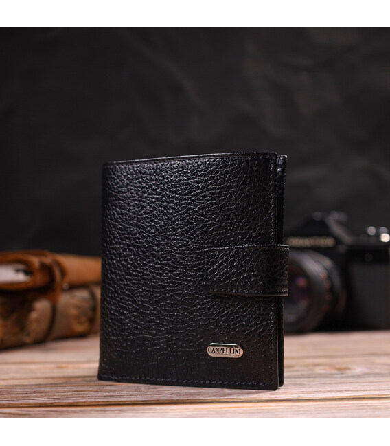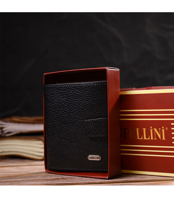 Описание Красивый мужской бумажник из натуральной зернистой кожи CANPELLINI 21730 Черный