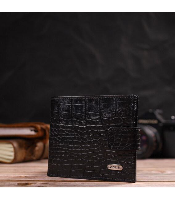 Описание Мужской оригинальный бумажник горизонтального формата из натуральной кожи с тиснением под крокодила CANPELLINI 21768 Черный