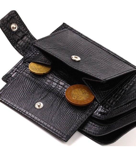 Описание Оригинальный фактурный бумажник горизонтального формата из натуральной кожи с тиснением CANPELLINI 21771 Черный