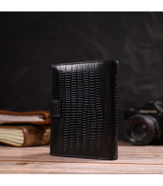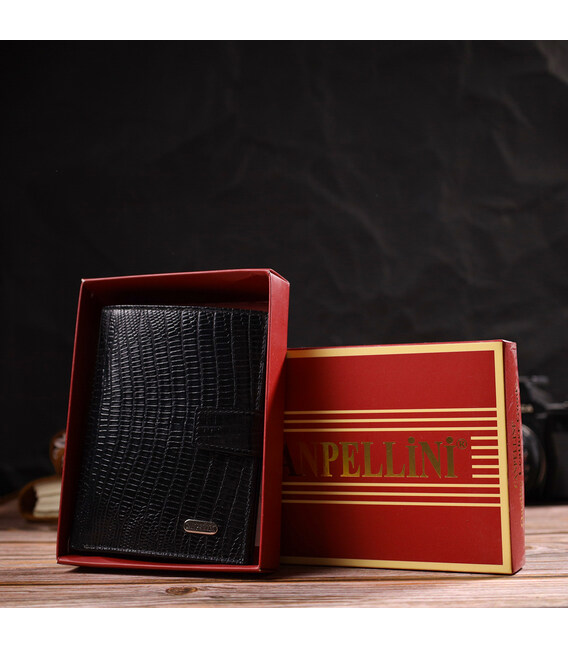 Описание Фактурный вертикальный мужской бумажник среднего размера из натуральной кожи с тиснением CANPELLINI 21859 Черный