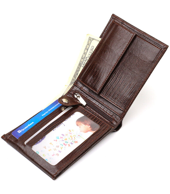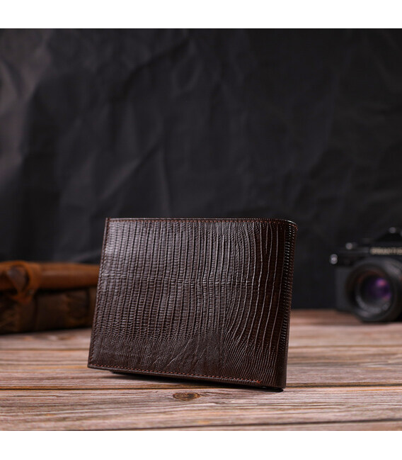 Описание Стильный горизонтальный мужской бумажник среднего размера из натуральной фактурной кожи CANPELLINI 21864 Коричневый
