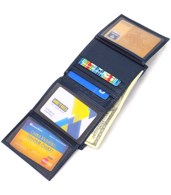 Описание Мужской компактный кошелек из натуральной кожи флотар CANPELLINI 21872 Синий