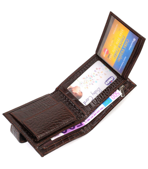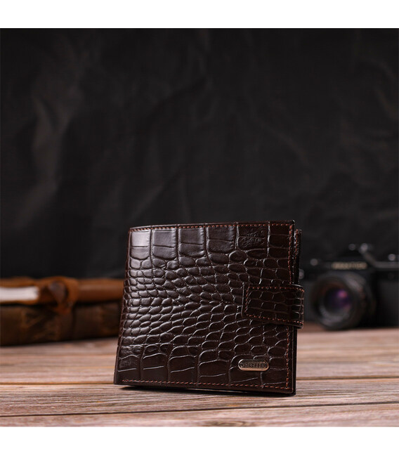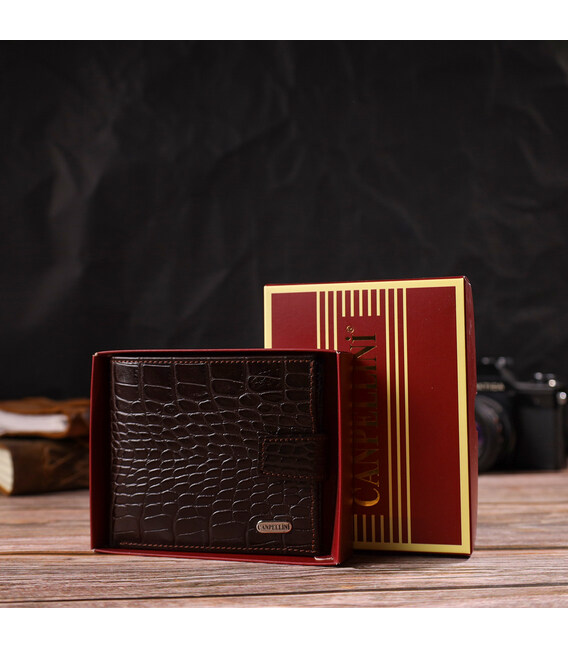Описание Модный мужской кошелек из натуральной кожи тиснением под крокодила CANPELLINI 21878 Коричневый
