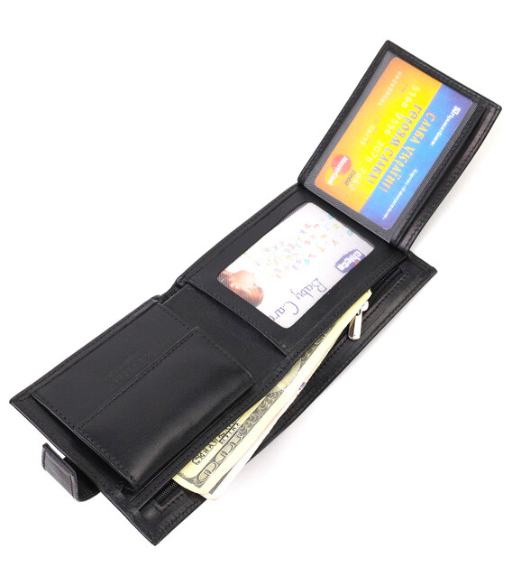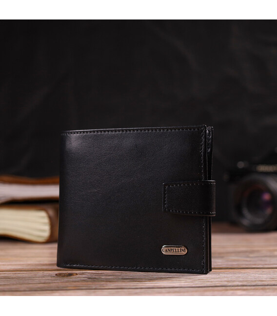 Описание Стильный мужской кошелек из натуральной гладкой кожи CANPELLINI 21880 Черный