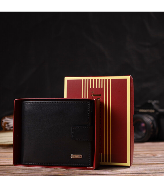 Стильный мужской кошелек из натуральной гладкой кожи CANPELLINI 21880 Черный