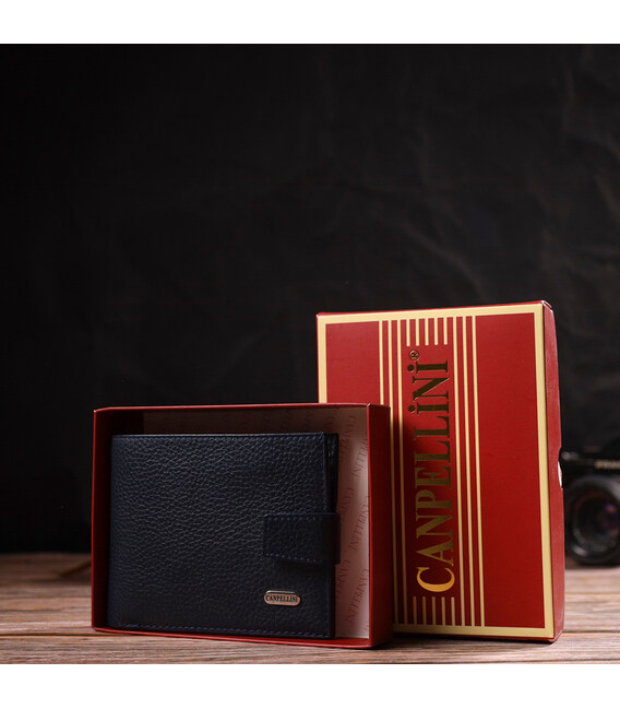 Описание Популярный горизонтальный кошелек для мужчин из натуральной кожи флотар CANPELLINI 21884 Синее