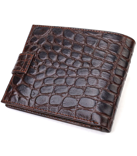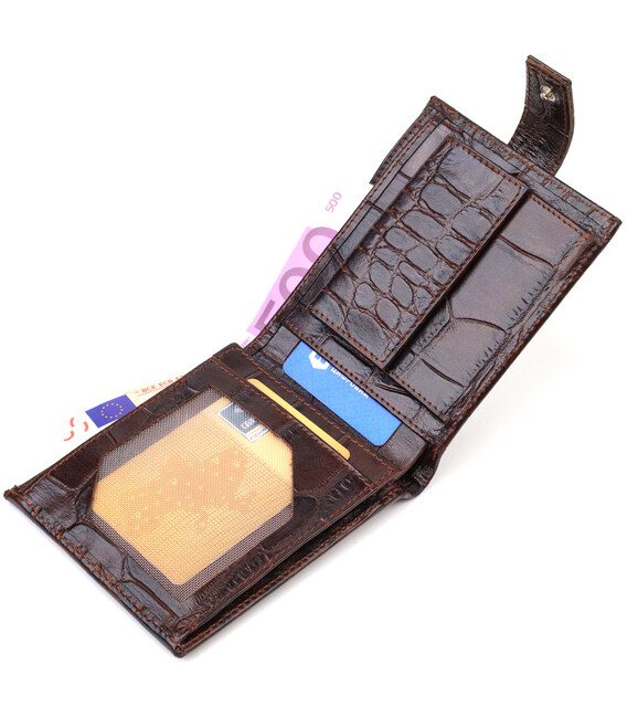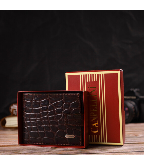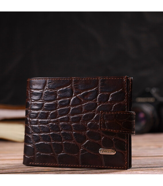 Описание Практичный горизонтальный кошелек для мужчин из натуральной кожи с тиснением под крокодила CANPELLINI 21888 Коричневый