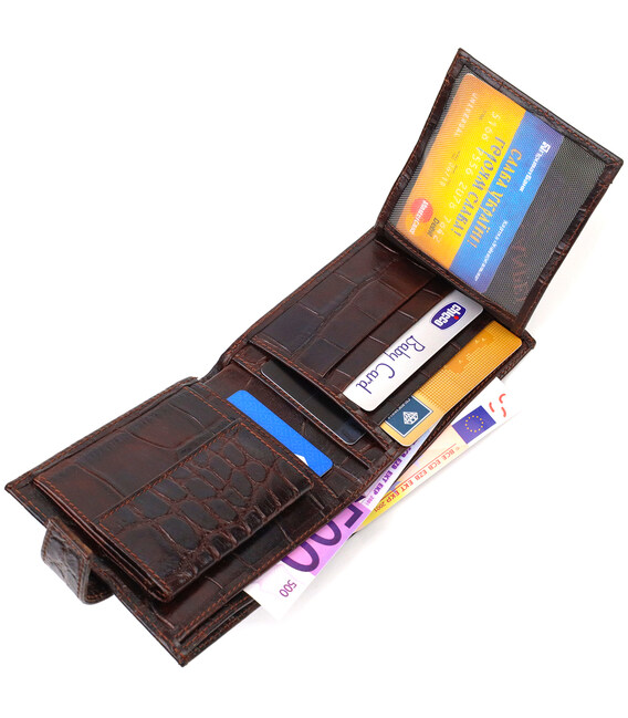 Практичный горизонтальный кошелек для мужчин из натуральной кожи с тиснением под крокодила CANPELLINI 21888 Коричневый