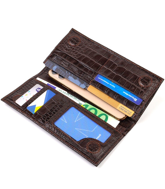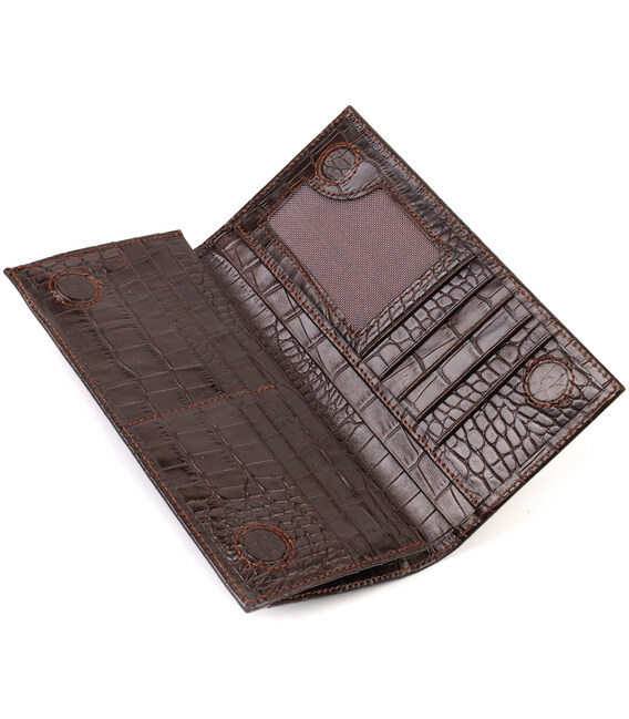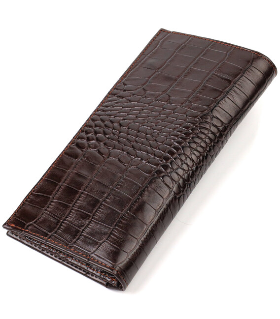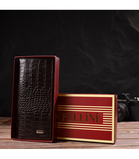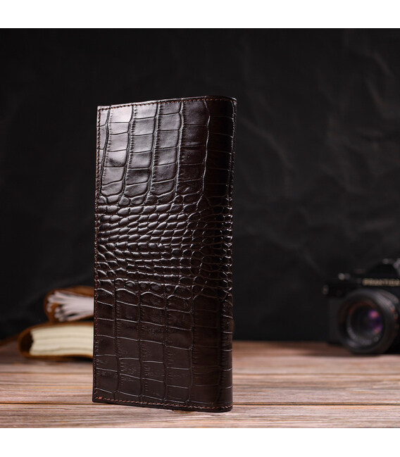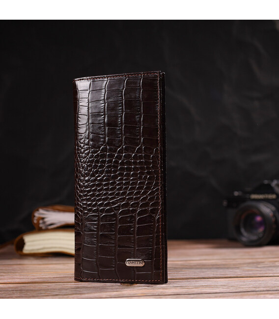 Описание Стильный мужской вертикальный бумажник из натуральной кожи с тиснением под крокодила CANPELLINI 21900 Коричневый
