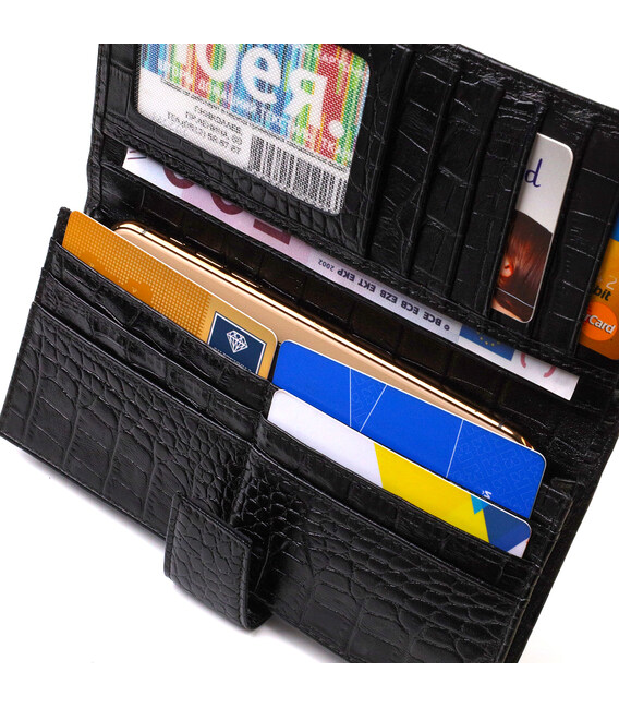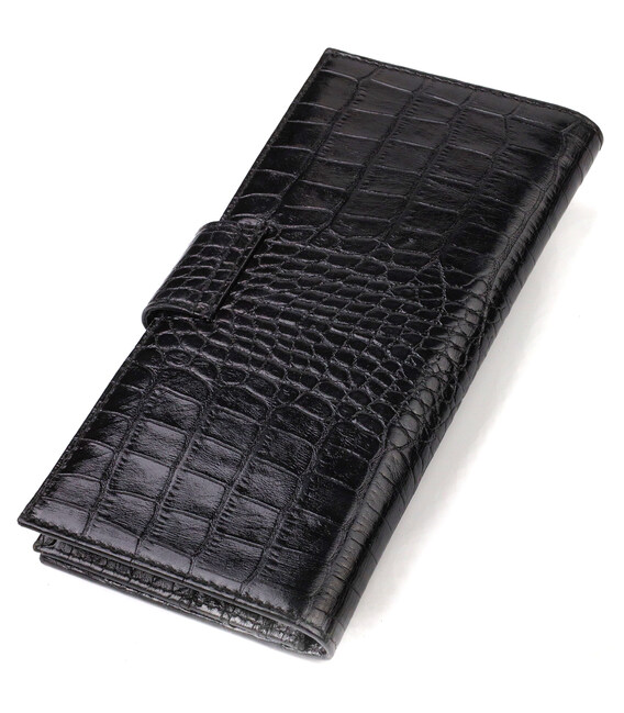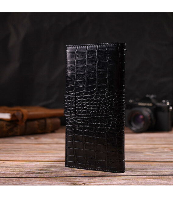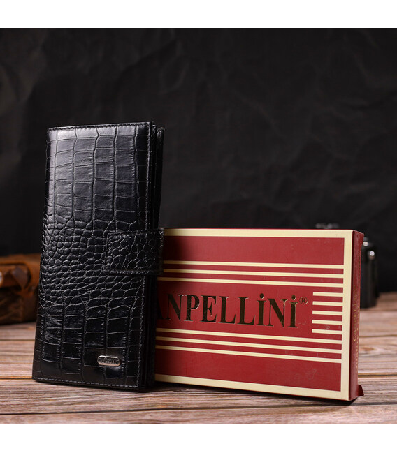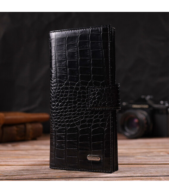 Описание Узкий кошелек для мужчин из натуральной кожи с тиснением под крокодила CANPELLINI 21914 Черный