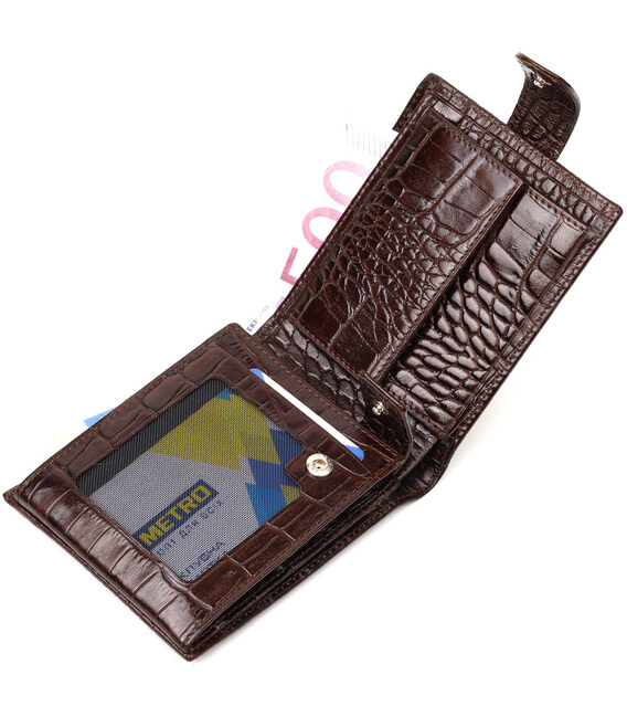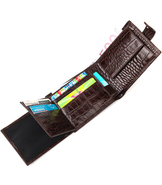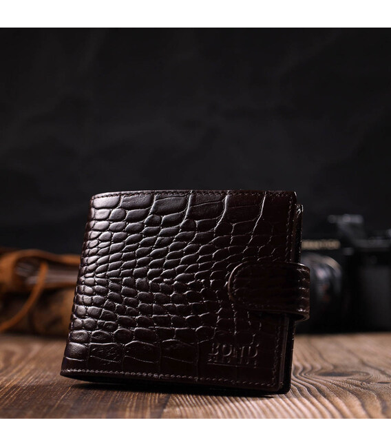 Описание Фактурный мужской горизонтальный кошелек из натуральной кожи с тиснением под крокодила BOND 22009 Коричневый