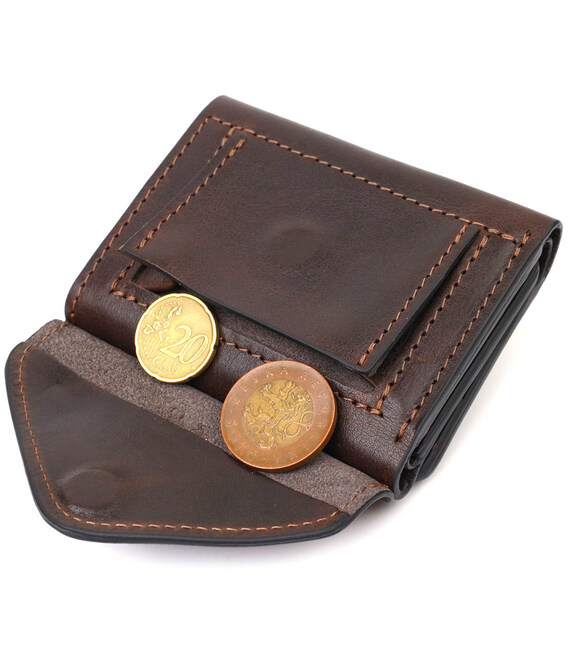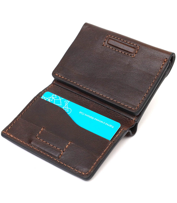 Описание Удобный мужской кошелек в три сложения GRANDE PELLE 16787 Темно-коричневый