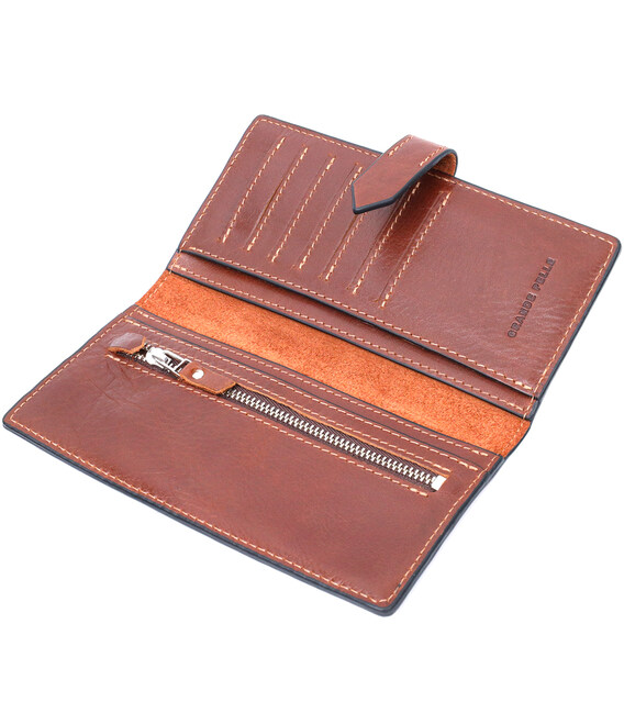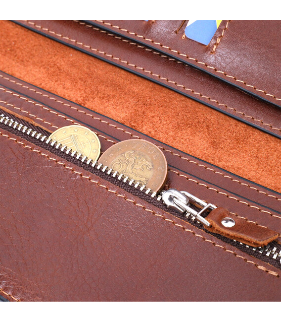 Описание Интересный вертикальный кошелек из натуральной кожи GRANDE PELLE 11660 Коричневый