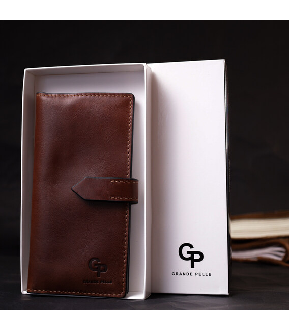 Интересный вертикальный кошелек из натуральной кожи GRANDE PELLE 11660 Коричневый