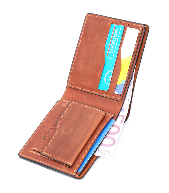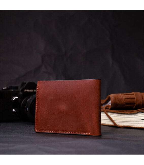 Небольшой мужской бумажник из итальянской винтажной кожи высочайшего качества в красивом коричневом цвете. Современный дизайн, элитная кожа, качественная фурнитура - все это подчеркивает действительно качественную вещь. Стоит отметить, что внутри портмоне выполнен также из натуральной кожи, без тканевой подкладки. Аксессуар подчеркнет вашу индивидуальность и отменный вкус. Уверены, что такой подарок оценит любой мужчина. Упакован бумажник в фирменный тканевый чехол.