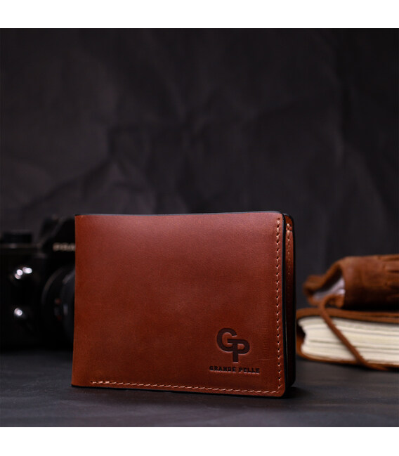 Компактный кошелек из натуральной кожи без застежки GRANDE PELLE 11661 Коричневый