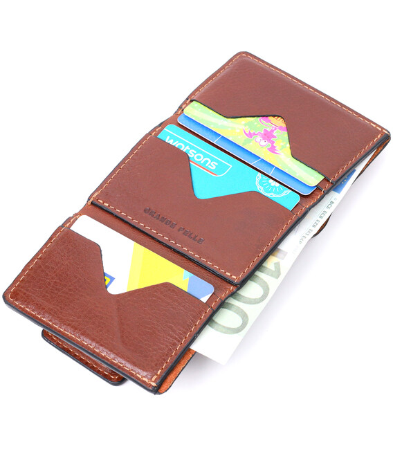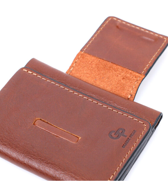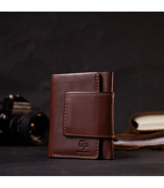 Небольшой кошелек из натуральной кожи в три сложения GRANDE PELLE 11662 Коричневый