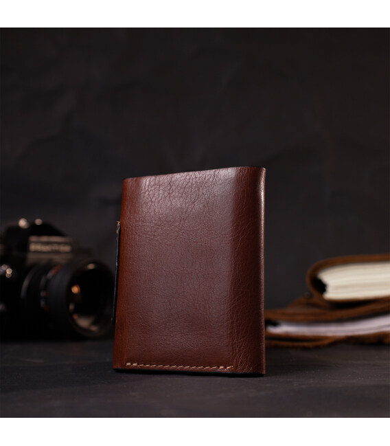 Оригинальный мужской бумажник из итальянской гладкой кожи высочайшего качества в красивом коричневом цвете. Современный дизайн, элитная кожа, качественная фурнитура - все это подчеркивает действительно качественную вещь. Стоит отметить, что внутри портмоне выполнен также из натуральной кожи, без тканевой подкладки. Аксессуар подчеркнет вашу индивидуальность и отменный вкус. Уверены, что такой подарок оценит любой мужчина. Упакован бумажник в фирменный тканевый чехол.